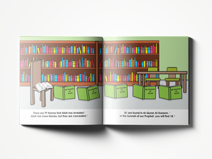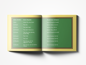 With a beautifully constructed poem, meandering its way through the book, each page reveals a significant piece of information concerning these Names and Attributes in an educational setting.