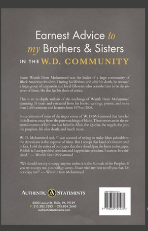 It is a criticism of some of the major errors of W. D. Mohammed that have led his followers away from the pure teachings of Islam. These errors are in the essential matters of faith, such as belief in Allah, the Qur’an, the angels, the jinn, the prophets, life after death, and much more.