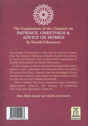 In this Volume, we have selected three important topics: patience (Sabr), greetings (Salaam) and advice on women (Wasiyyah bin-Nisaa). Discover the true meanings, virtues, details and evidences with respect to these subjects which are relevant to every Muslim household.