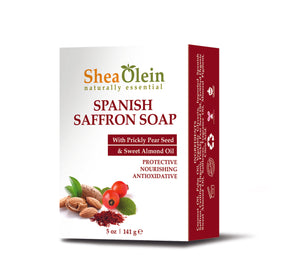 Shea Olein’s certified organic Spanish Saffron Soap is made with 100% natural Prickly Pear Seed and Sweet Almond Oil. Spanish Saffron possesses properties that help with cell formation and repair to brighten and hydrate the skin. Blended with Vitamin E rich Sweet Almond oil which keeps skin cells healthy and resistant to UV damage, and Prickly Pear oil amino acids that stimulate collagen production for faster cell turnover, it aids in protecting, smoothing, and softening the skin.