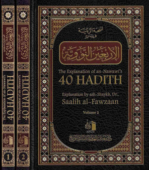 This is the commentary of the forty Ahadeeth of al Hafidh an-Nawawi Rahimahullah; written in Arabic with English translation on the opposing page. This commentary was given during the lectures delivered by Shaykh Saalih al Fawzaan Hafidahullah after the Fajr prayers at the Hamaad al Salamah Masjid in Riyadh.